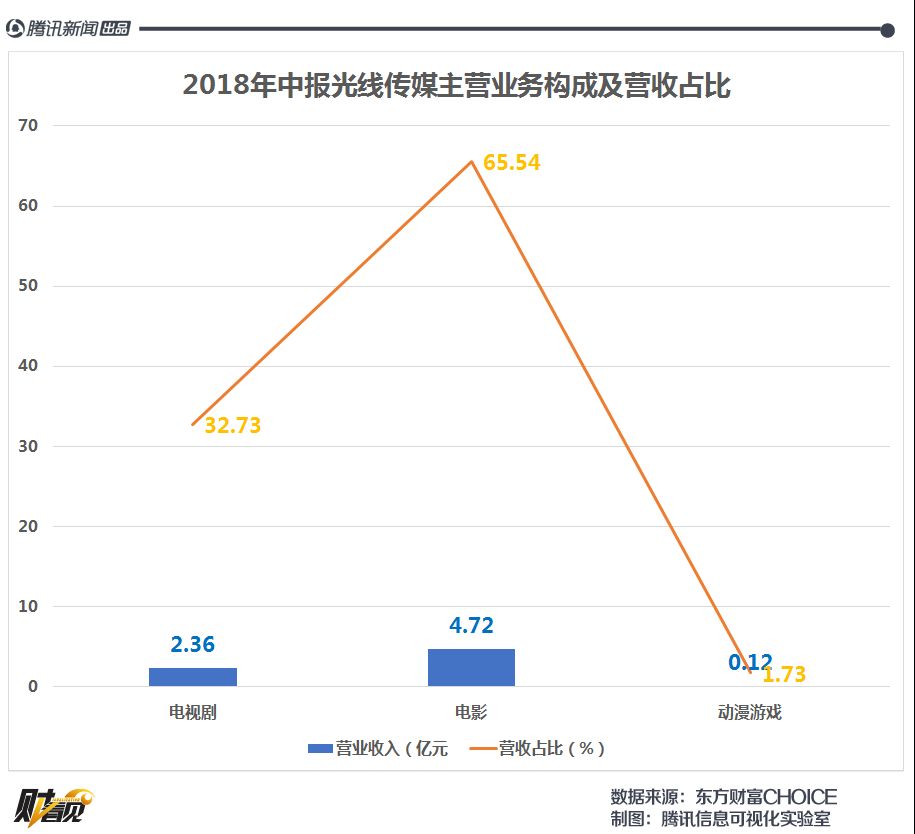 在电影领域,2017年中报,电影收入7.24亿元,营收占比70.36%;2018年中报中,电影收入4.72亿元,营收占比65.54%。电影在公司营收中的占比有所下降。
