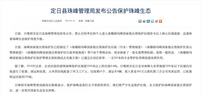 由于该大本营属于核心保护区的生态红线内,所以从去年12月5日起禁止入内。对此,珠峰保护区管理局副局长格桑表示,确实发布了此公告。从2019年起,游客大本营将后撤至绒布寺一带。