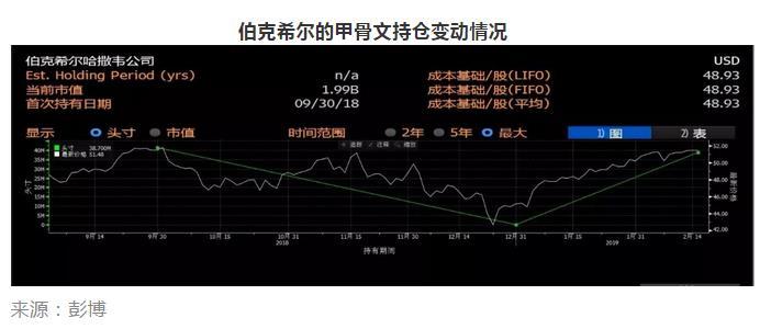 伯克希尔2018年第四季度对甲骨文实施了清仓,共卖出4100万股。在一个季度前,伯克希尔刚刚买入甲骨文。2018年底,甲骨文股价一度跌至43美元附近,伯克希尔随即认栽出局。不过,甲骨文股价随后出现反弹,目前已站上50美元。彭博数据显示,在2019年第一季度,伯克希尔又买回了3870万股甲骨文股票。