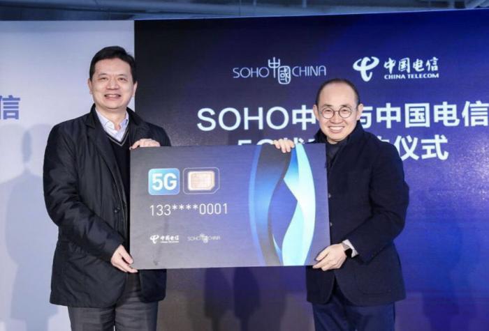 不仅潘石屹首尝鲜,21世纪经济报道记者还从SOHO中国了解到,于1月29日,SOHO中国与中国电信北京公司举行5G战略签约仪式,率先铺设5G网络。双方商定,共同向SOHO中国北京旗下丽泽SOHO、望京SOHO、银河SOHO、三里屯SOHO、朝外SOHO以及SOHO尚都共六个楼宇中的入驻用户提供5G网络覆盖和服务保障,联合推进5G业务应用及产业合作落地。这是中国第一批完成5G网络布置的商业楼宇。