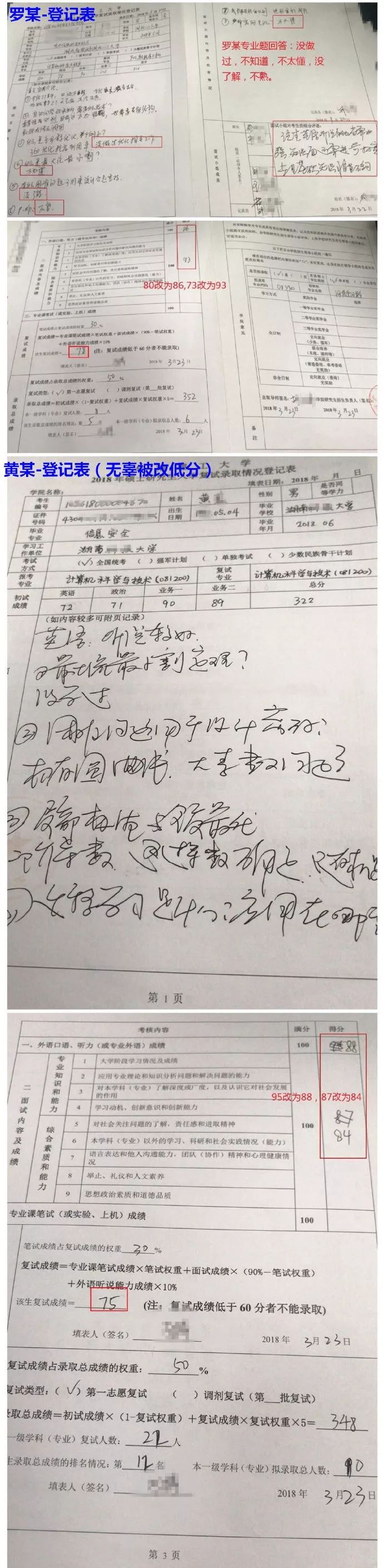 据网友“@平凡的世界overlooker”报料,考生罗某考试成绩原本排在第22名,无法获得攻读该学院的学硕资格,但通过改高面试成绩20分,改高英语成绩6分,罗某的成绩一下跃至第14位,被计算机科学与技术专业(学硕)录取。考生黄某考试成绩原本排在第12名,因面试成绩被改低3分,从原本的排名12名降至16名,不仅没有被录取,还丧失了专业调剂的机会。