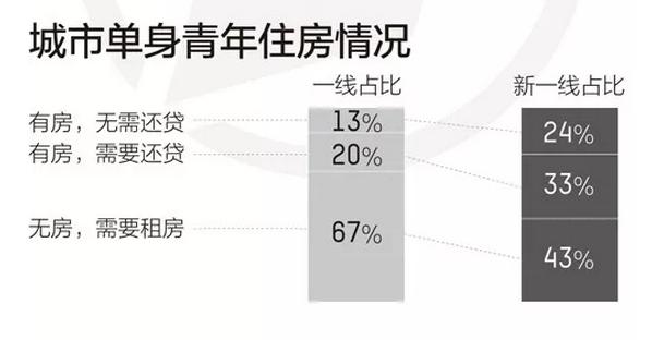 由于大城市生活成本高,单身青年短期内没有购房需求与经济基础。在一线与新一线城市的单身青年,多为选择租房。
