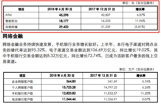 智能化、电子化、自助终端等智慧网点转型成大势所趋。建设银行称,2017年运行自助柜员机 97,007台,投入运营自助银行 29,047 家,其中离行自助银行 14,776 家,离行自助银行与网点之比达 1:1;交通银行截至2018年上半年末境内银行机构营业网点合计达3,259家,较上年末减少11家,其中,新开业15家,整合低产网点26家。