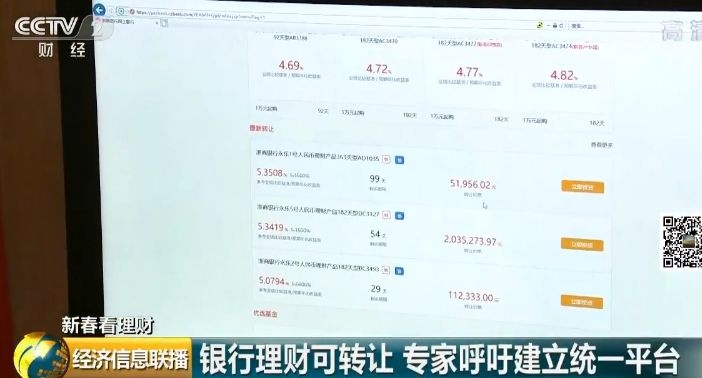 央视财经记者了解到,目前已经有招商银行、中信银行、浦发银行、建设银行、浙商银行等多家银行开展了这项业务。业内专家表示,目前理财产品的转让范围仅限于每家银行自己发行的理财产品,流动性受到一定的限制,随着越来越多的银行开展这项业务,急需一个统一的交易平台。