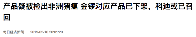 对于该款产品下架,金锣天猫旗舰店客服人员表示,是产品“已不再销售”,其否认是因为涉及“猪瘟”问题。对于更多该产品或猪瘟相关的问题,该客服人员表示,“不清楚。”