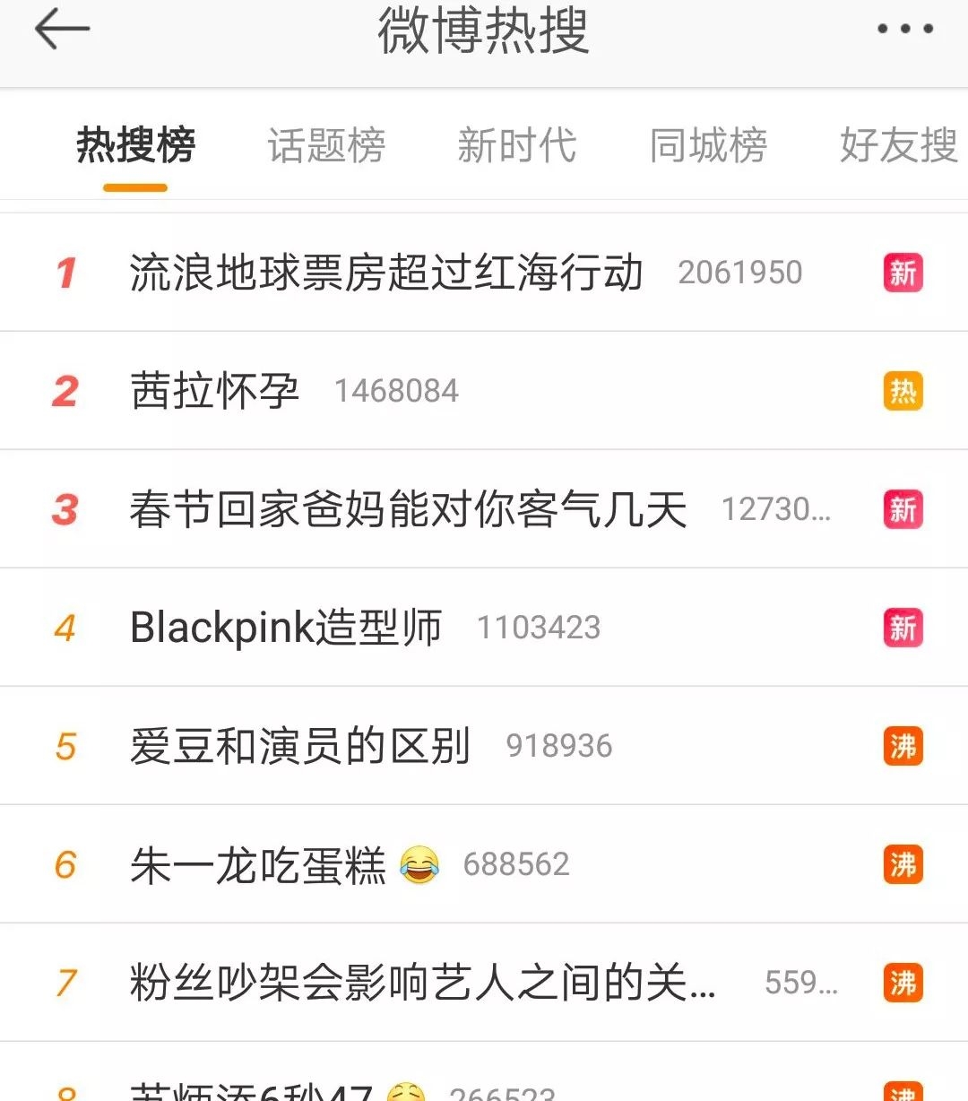 刚刚,“流浪地球票房超过红海行动”的话题冲上微博热搜第一!