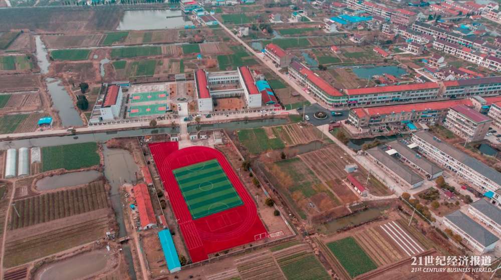 空中俯瞰海门国强镇小学,这就是当地村民称为可能是新机场中心位置。