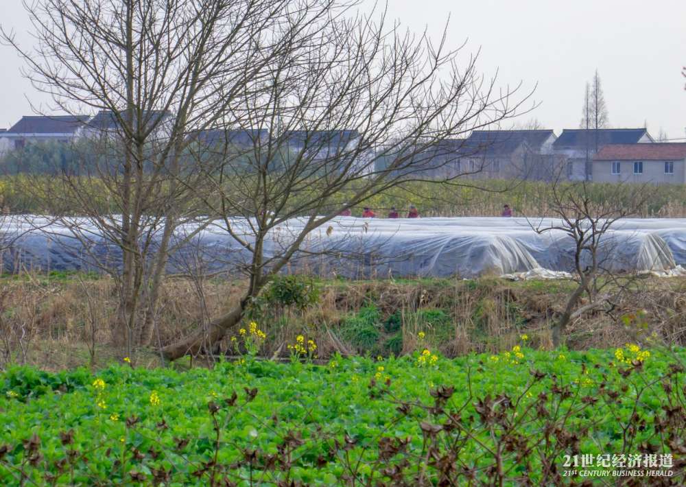 江苏南通海门国强镇下属国强村田间。现正草莓上市时节。田里的草莓养殖大棚多是村民租给外来人。