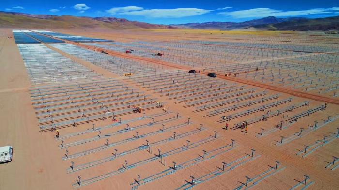 高查瑞光伏电站占地总面积8平方公里,相当于11个北京故宫那么大;项目将安装97.44万片光伏板,每个光伏板的尺寸为1960*992*40(mm);预计年发电量7.89亿千瓦,将满足胡胡伊省全年消费用电量。