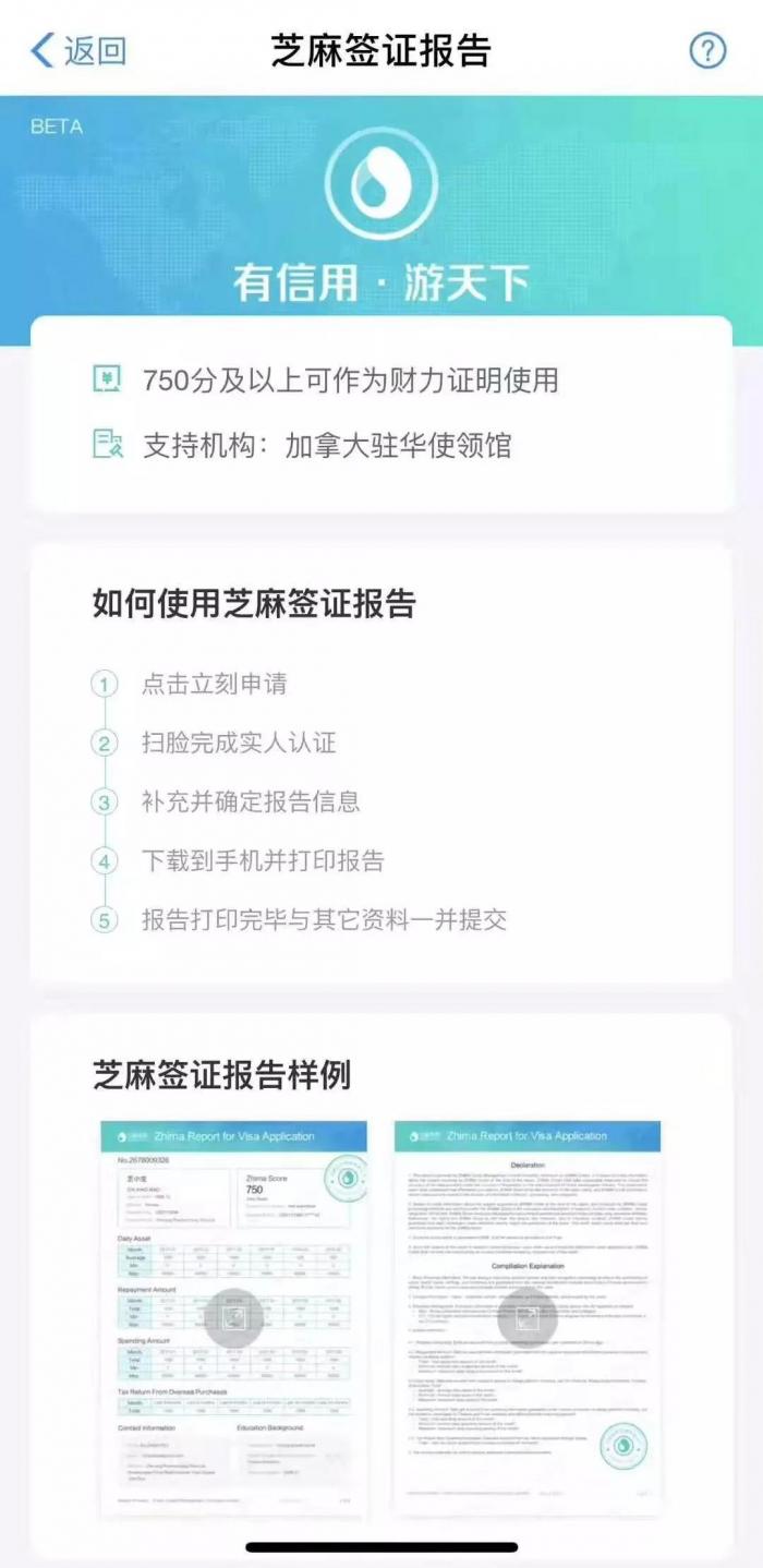 加拿大移民部近日宣布:芝麻信用报告可用作签证财力证明。