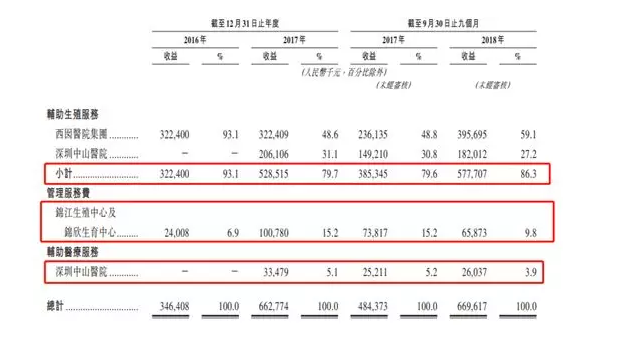 具体而言,公司收入除了辅助生殖服务、还有管理服务及辅助医疗服务,截至2018年9月30日止九个月,辅助生殖服务收入5.78亿元,占总收入86.3%,管理服务费为6587.3万元,占比9.8%,辅助医疗服务为2603.7万元,占比3.9%。