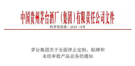 最严通知!茅台集团全面停止定制、贴牌和未经审批产品业务