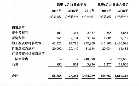 不过,几个可以参考的数据是,据比特大陆招股书,2017年,加工费及原材料成本项(主要指芯片制造及封测费用)花费9.73亿美元(约66亿元人民币),较上年同比增长9倍。而在2018年上半年,这项费用更高达14.76亿美元(约100亿人民币),同比增长11倍。