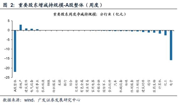 (2)重要股东增减持(A股整体):上周重要股东净减持22亿元,节前最后一周净减持6亿元。其中净增持规模前三分别为房地产、建筑装饰、电气设备;减持规模前三分别为电子、化工、计算机。