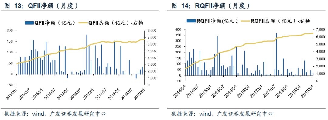 RQFII净额:1月RQFII增加20亿元,2018年12月净额增加40亿元。