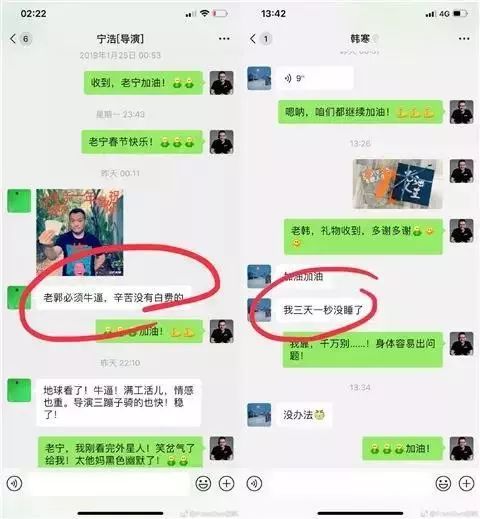 郭帆晒出宁浩、韩寒的聊天截图
