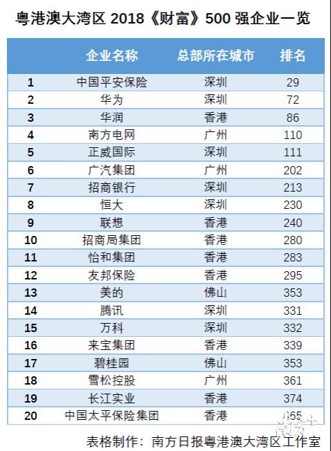 粤港澳大湾区内的世界500强企业分布图