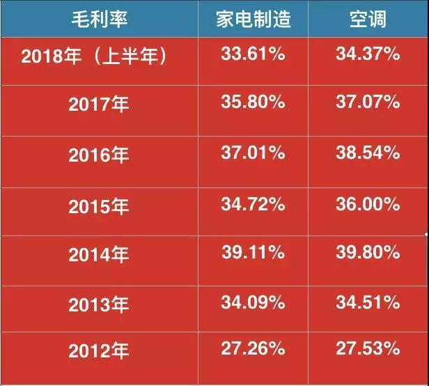2017年,格力电器的扣非净利润同比增长35.33%;2018年前三季度,扣非净利润增速下降到了31.94%。虽然和往年比依然很高,但从2018年半年报可见,格力电器的家电制造和空调毛利率却降到了过去2013年以来最低。