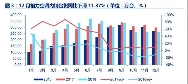 据申万宏源研报数据,2018年12月,格力空调销量同比下滑了4.95%,其中内销下滑了11.37%。