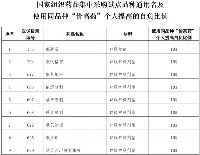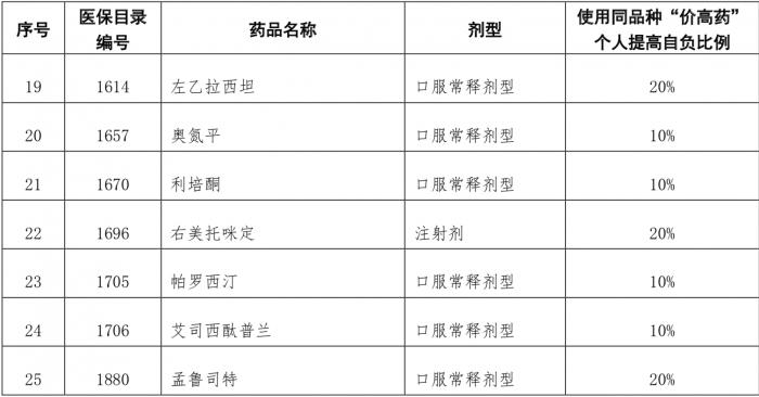 对“价高药”适当提高个人自负比例(老红军、离休人员和一至六级革命伤残军人除外)。本市城镇职工基本医疗保险和城乡居民基本医疗保险参保人员使用“价高药”的,药品自负比例提高10%(基本药物和医保甲类支付的药品)或20%(其他药品)。实行个人定额自负的抗癌药,参照上述药品适当上调定额自负标准。参加本市社区医疗互助帮困计划人员参照执行。住院患者使用“价高药”的,统一按出院时新的自负比例结算。