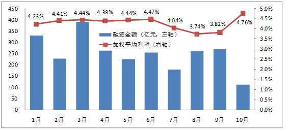 图1:2018年境内机构境外人民币融资金额及利率走势