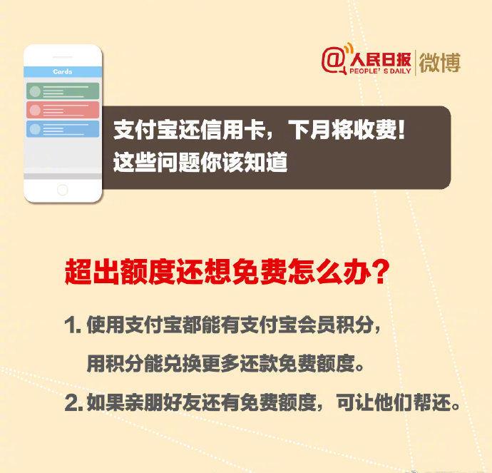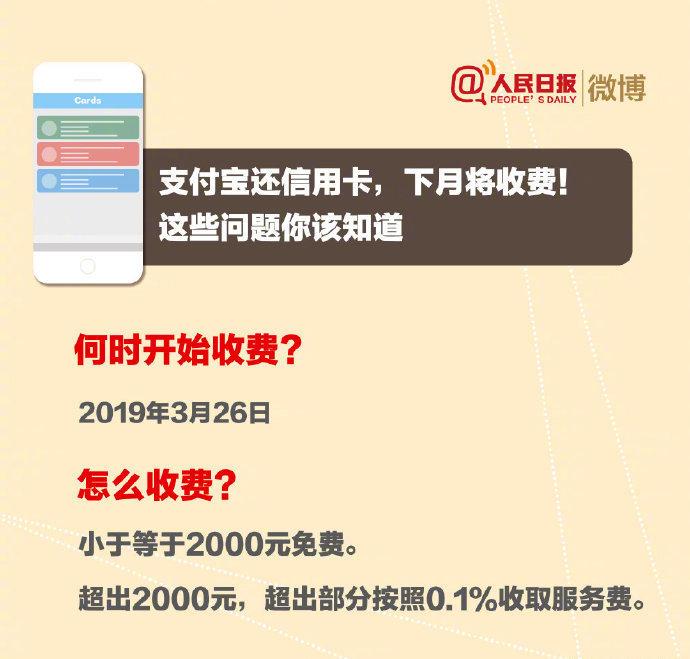 2月21日,支付宝对外发布公告表示,为了持续向用户提供更优质服务,自3月26日起,通过支付宝给信用卡还款将收取服务费。值得注意的是,支付宝提供了每人每月2000元的免费额度。也就是说,2000元以内依然免费,超出2000元的部分,再按照0.1%收取服务费。如果用户需要提升自己的免费额度,可以通过支付宝会员积分进行兑换。