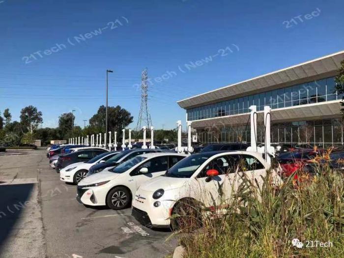 FF为员工新安装的一排充电桩。图片:21Tech独家拍摄,摄影:白杨