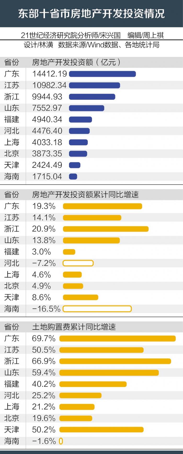 广东江苏“领衔”东部房地产投资 土地购置费成为投资增长主动力