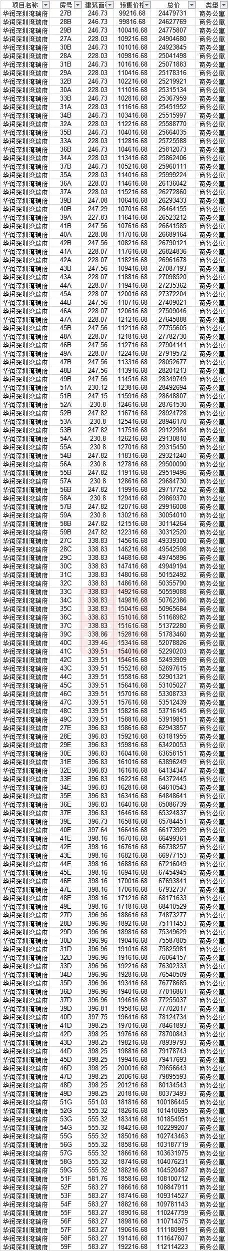 华润瑞府(又名安达仕酒店),项目总建筑面积12.9万平方米,建筑高度250米,分为地下5层,地上59层(其中1~24层为安达仕酒店部分,建筑面积约4万平米,其余为公寓),可售部分为27-59层,为本次备案的商务公寓。不难看出,这是超高层的公寓。