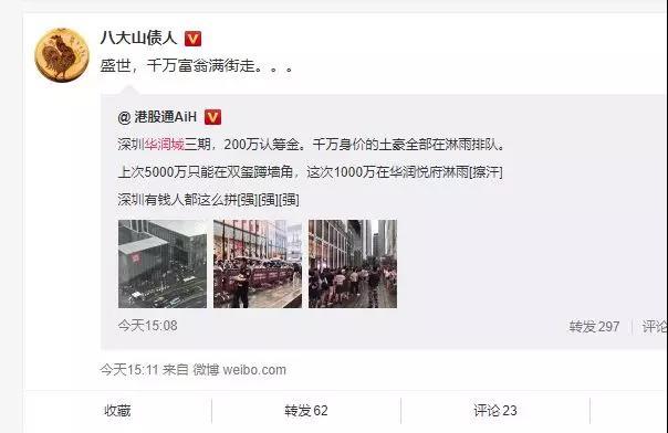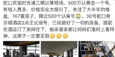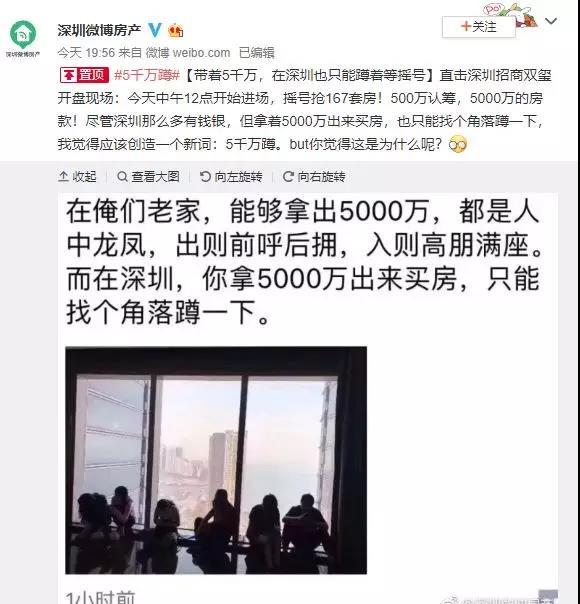 500万认筹,5000万的房款!尽管深圳那么多有钱银,但拿着5000万出来买房,也只能找个角落蹲一下,我觉得应该创造一个新词:5千万蹲。