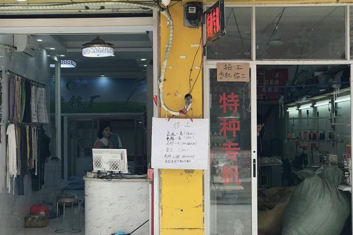 许多制衣厂规模不大,前店后厂,节后迅速将招工广告挂在门口。