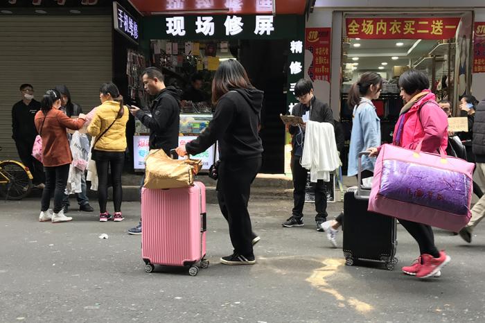 节后务工人员返城,有人直接推着行李来找工作。