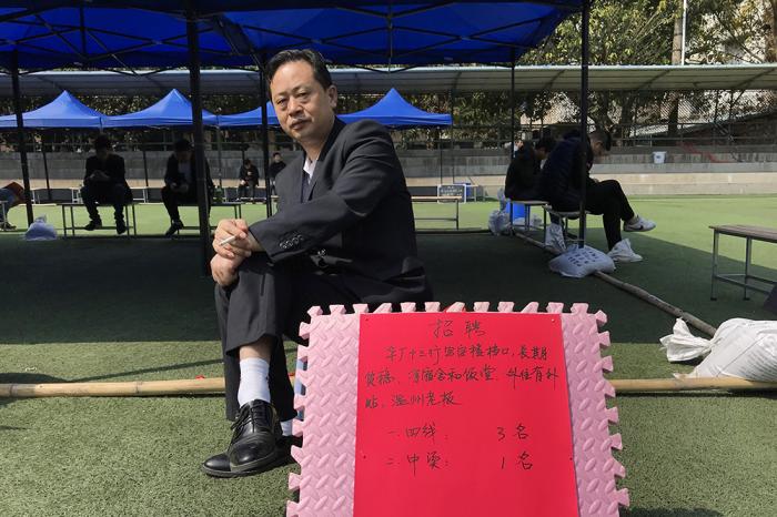 一名守在摊位上的企业招聘人员,他要在10天内将人招满。