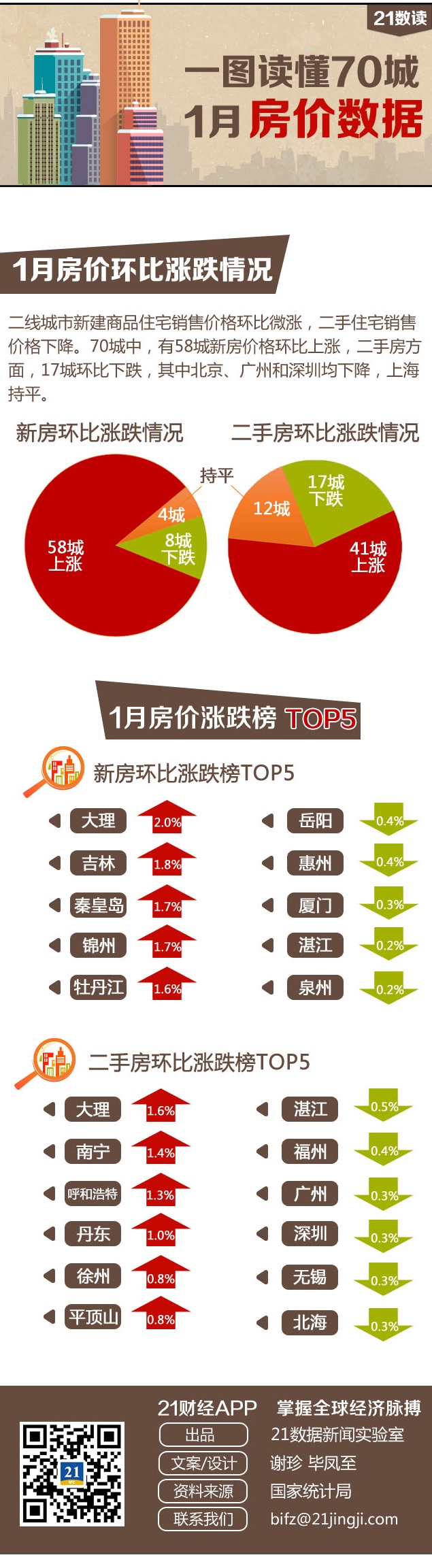 图解70城最新房价变化:17城二手房价下跌 一线城市全线下调