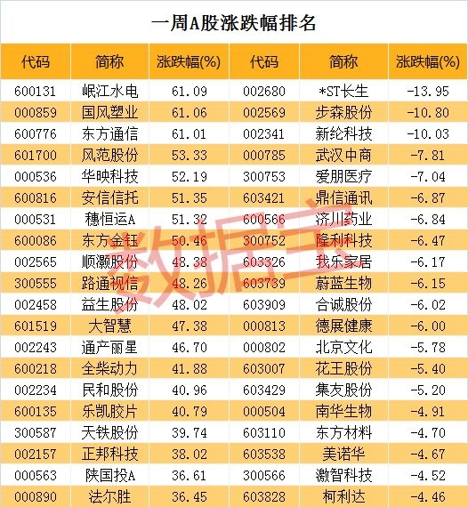 本周累计涨幅在50%以上的还有风范股份、华映科技、安信信托、穗恒运A、东方金钰。不少股票已经出现连续涨停,其中风范股份、华映科技、东方金钰连续4个涨停,路通视信、人民网连续3个涨停,天铁股份、正邦科技、安信信托、法尔胜等连续2个涨停。