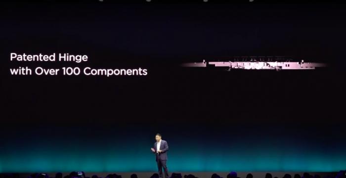 其中,折叠屏手机的一大难点是弯折处的铰链。余承东谈道,华为采用了鹰翼式设计,研发人员经过3年时间才攻克这一难题,“铰链的设计非常复杂,我们要做到真正的背对背折叠,中间还要没有缝隙。这其实非常挑战,因为弯曲的时候,里面的屏幕会更长,但是我们可以做到很平整,铰链中有超过了100个部件。”