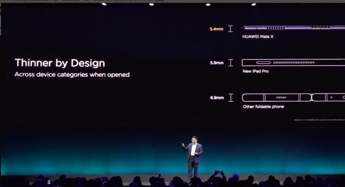 再来看厚度,Mate X打开后屏幕厚度只有5.4毫米,折叠之后的厚度为11毫米。