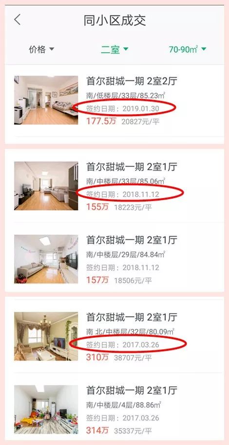 具体看一下成交数据,首尔甜城一期80多平的房子1月底成交价在2万/平左右,去年11月只有1.8万/平。而在2017年3月最高点时,一度卖到3.8万/平。