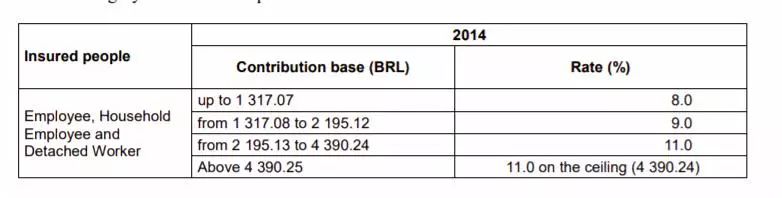 但是与高工资不符的是,巴西公务员并不需要缴纳多少社保,在2012年前,巴西公务员社保实行双轨制,公务员个人缴纳的社保占自己月收入的11%,政府缴纳占22%。 2012年,巴西取消公务员社保双轨制,改革前入职的公务员仍按照原来的办法缴纳,改革后入职的任何员工,不论职务高低和工资多少,最高退休金每月将不超过 3916雷亚尔(约合11934元人民币),但每个月最多只需缴纳3916雷亚尔的11%,政府缴纳比例则为3916雷亚尔的22%。