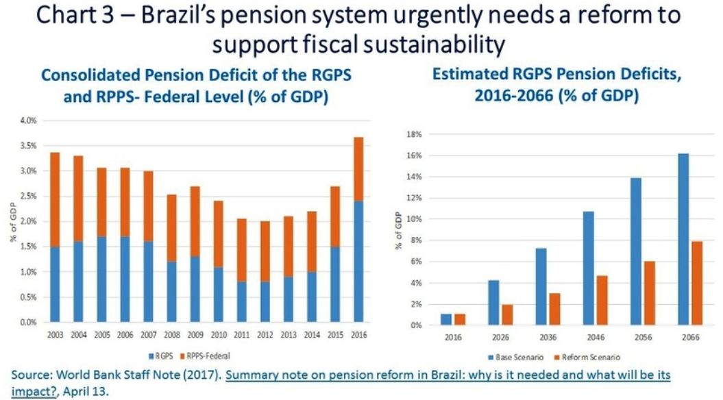 巴西在职公务员(包括军人)的数量在1995年到2016年的20年间已经增长了约60%,达到1200万人。据《经济学人》杂志统计,巴西养老金开支已经超过了GDP(国内生产总值)的10%。