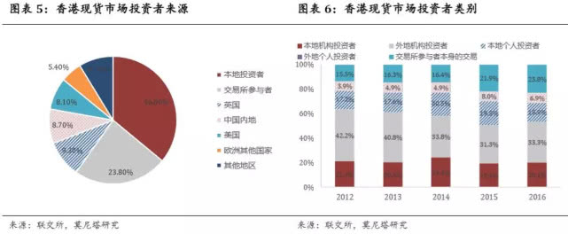 A股与港股投资逻辑的不同之处集中表现在对估值的关注度上,国内A股对估值的关注度可能较高,而港股对估值的关注度要稍低一些。这背后的原因主要在于投资者结构与投资理念的不同,A股市场个人投资者占比较多,市场呈现出一定的散户风格。港股市场中本地投资者占比达到36%、交易所参与者占比为23.8%、内地资金占比仅仅为8.7%(图表5);同时,机构投资者占比达到77.2%(交易所参与者也可以归类为机构投资者当中),个人投资者占比仅为22.8%(图表6),因此对盈利的关注度更高,对估值的关注度会偏低一些。
