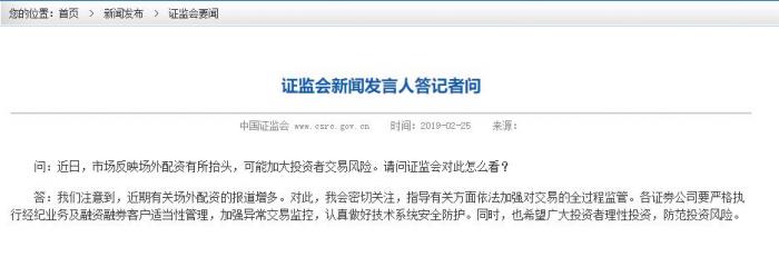 2月25日晚间,证监会专门就配资相关问题发布答记者问。