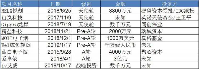 此外还有很多企业或项目都处在早期阶段,未来电子烟市场会涌入更多竞争者。