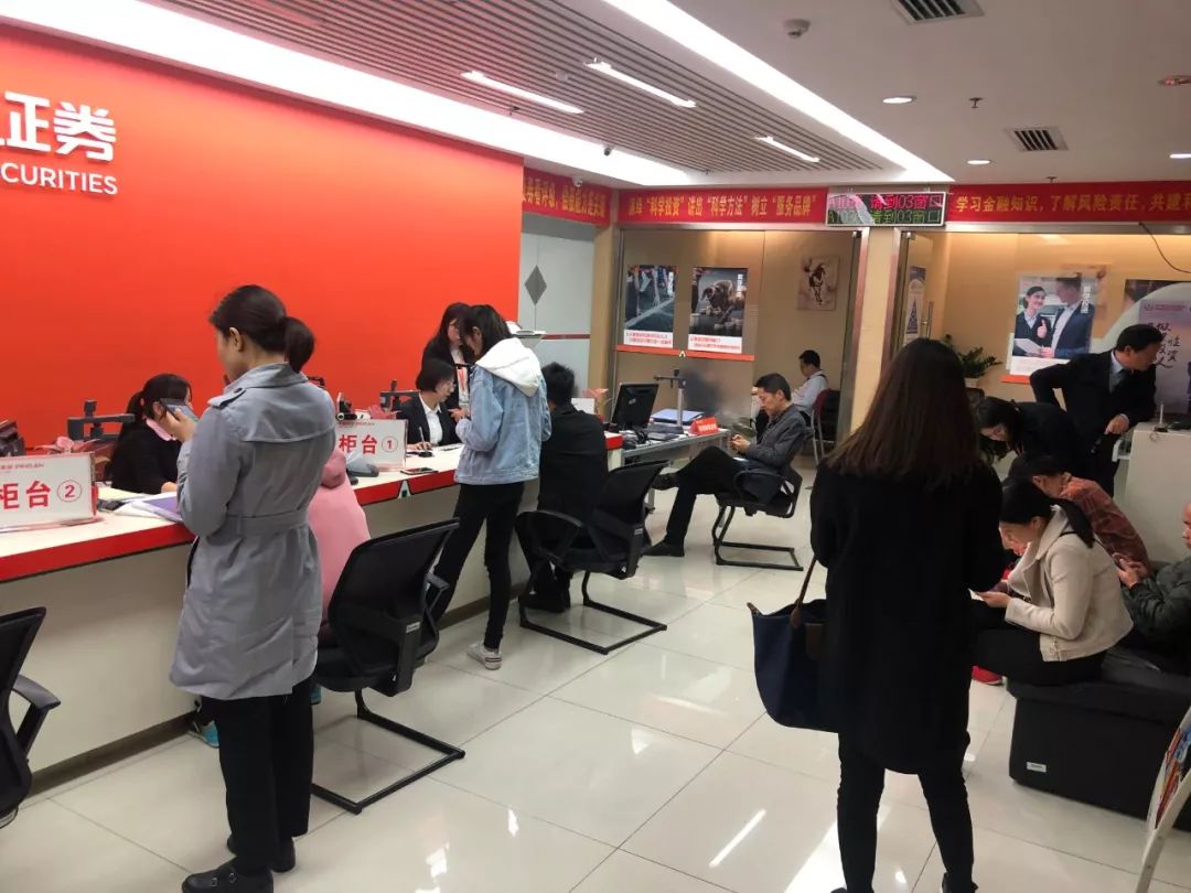 “现在网络电话开户比较多,一般营业部一天也来不了几个人,但是最近都陆陆续续有人过来,尤其是中午午休时间人比较多,主要是附近的上班族,还有一些年纪比较大的老股民。除了有办理新开户的,还有一些老股民好久不用忘记账户密码,过来重置的。”