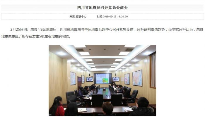 四川省地震局:荣县震区存在发生5级左右地震的可能
