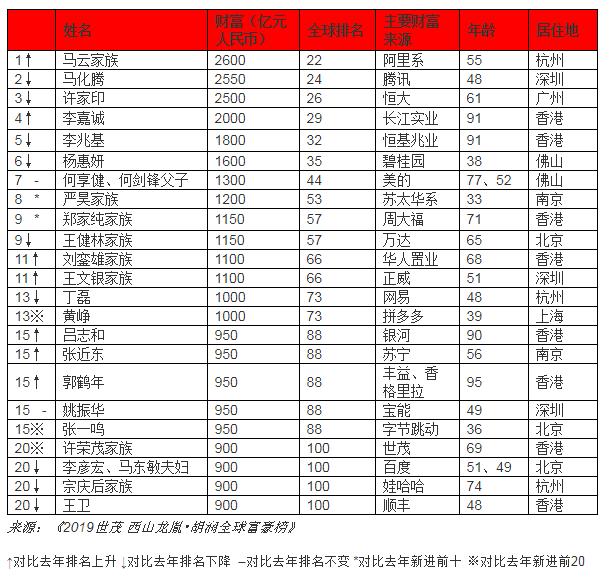 2019胡润全球富豪榜出炉!430位跌出榜单,创历史纪录