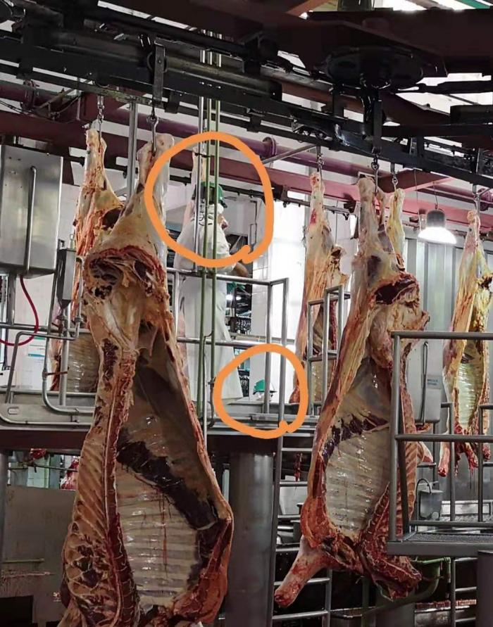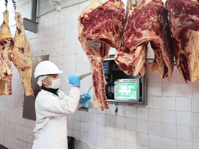 在分割车间,我特别注意到,有些戴着绿帽子的工作人员散布于不同工序中。欧伟鹏介绍说,他们是阿根廷阿根廷卫生检验局(SENASA)工作人员,“一共有12名,其中有4名兽医和8名助理。”SENASA工作人员被安插在所有生产环节,他们的职责包括检查牛的淋巴、肺部及心脏等,只要发现问题,就有权叫停生产。“阿根廷有严格的牲畜卫生检疫制度,阿根廷牛肉出口达到欧盟产品指定标准。SENASA在欧盟不派出人员的情况下,可自行签发出口欧盟许可证。”
