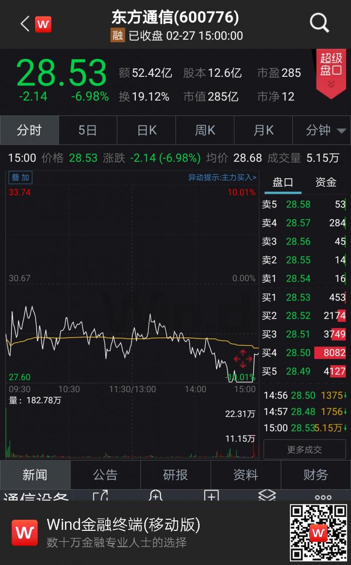前一日爆出“天地板”的东方通信,其2月27日的行情依旧“刺激”。