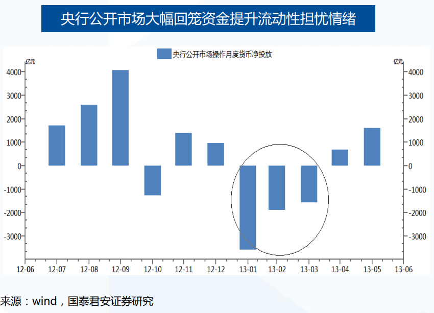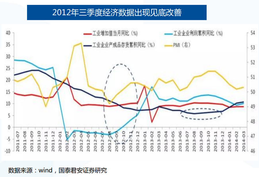 国际环境、经济数据、政策红利多重利好,2012年底踏空行情展开,流动性紧缩担忧下行情结束。国际层面,2012年9月 欧央行推出购债计划,美国推出QE3;国内经济数据来看,PMI、工业增加值、工业企业利润等在2012年三季度之后趋于改善;下半年各省市相继出台了投资计划,11月十八大召开提出创新驱动、制度红利,市场情绪迅速改善,在银行地产主线带动下,上证综指快速上涨回到年初水平。此后央行在公开市场大幅回笼资金,美联储或提前结束QE担忧升温,市场进入回调阶段。