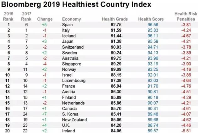 人类对健康的渴望从未停止。所以2019年版的彭博健康国家指数(Bloomberg Healthiest Country Index)一出炉,就引起了舆论关注。